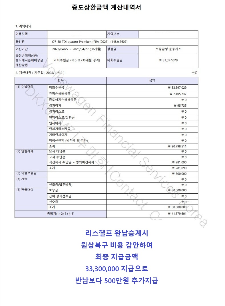 반납을 알아보시다가 리스헬프의 완납승계 글을 보시고 연락을 주셨습니다